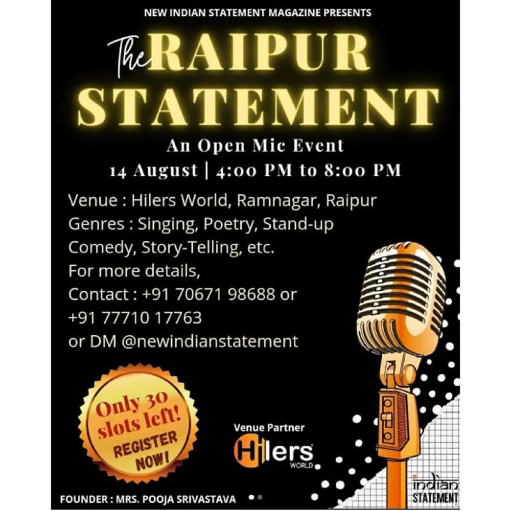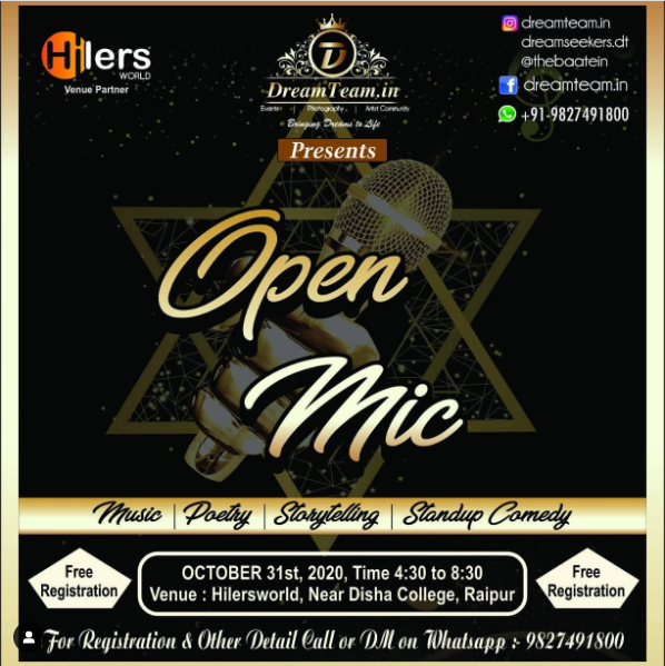 Open Mic for the talented People in Raipur from different fields like poetry, stand-up, storytelling, Music.